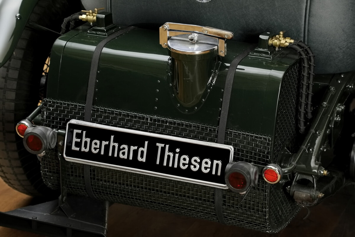 The bodywork renovation was carried out with the help of experienced wood technique specialists. They created a new wooden frame, which was mounted on the chassis frame. The wooden frame was then re-covered with a faithful to original Rexin upholstery from "The Vintage Fabric Company". This brand was revitalised in 2015 by Clare Hay and R.C. Moss and uses the working methods and machines of the 1920s and 1930s to manufacture the special covers for vehicle bodies of the time. The aluminium panelling was also renewed. In variance from the previous body design, there is only one door on the left-hand side (instead of two).