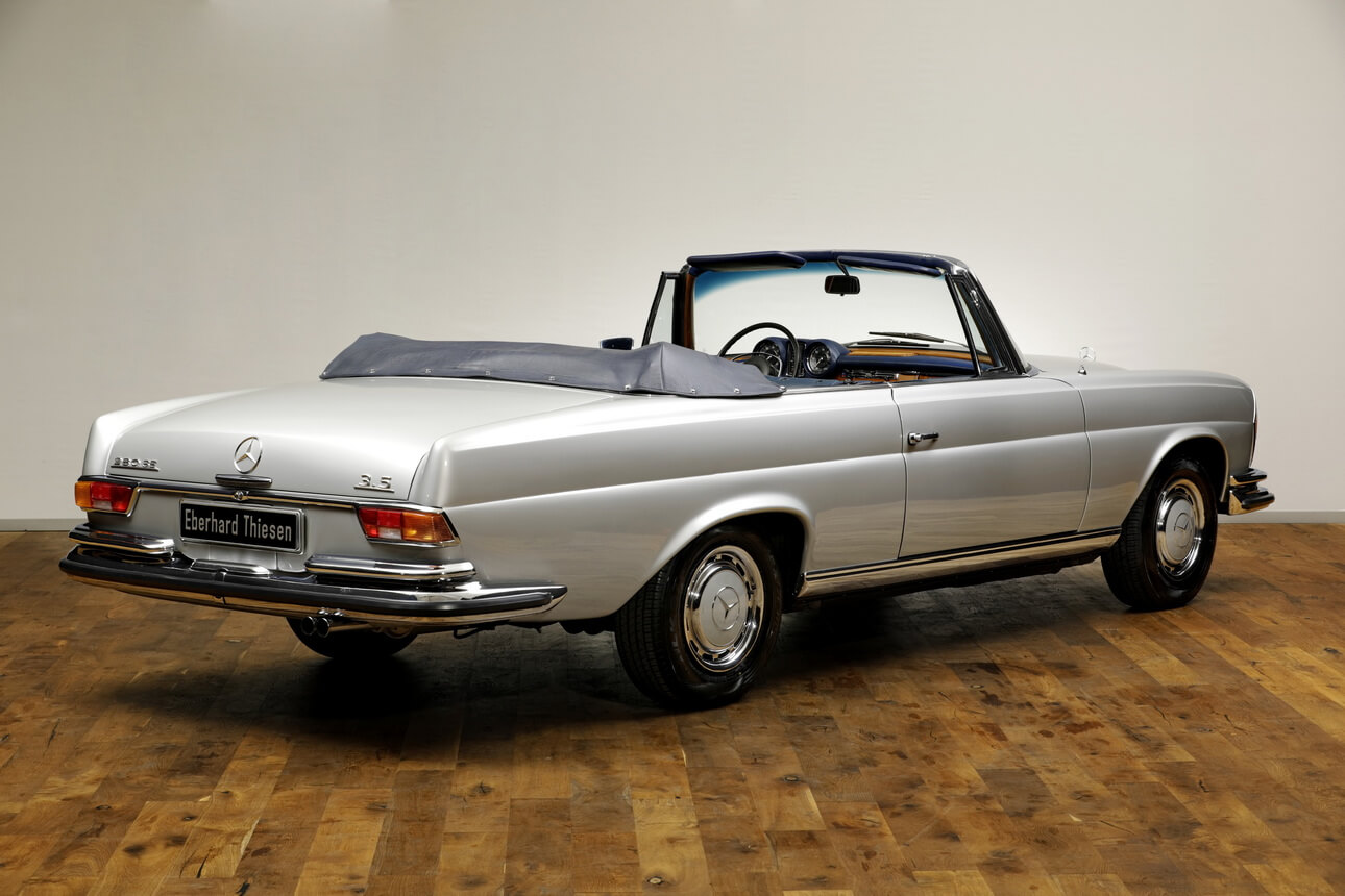 Das elegante Coupé und Cabriolet der Baureihe W111 wurde 1961 zunächst als 220 SEb Coupé vorgestellt. Das schlichte aber dennoch eindrucksvolle Design aus der Feder von Friedrich Geiger und Paul Bracq markierte einen Wendepunkt in der Mercedes-Stilistik weg von der barocken Opulenz der 50er Jahre. In den Kleinserien-Coupés und Cabrios steckt sehr viel mehr Handarbeit als in den W111 Limousinen.