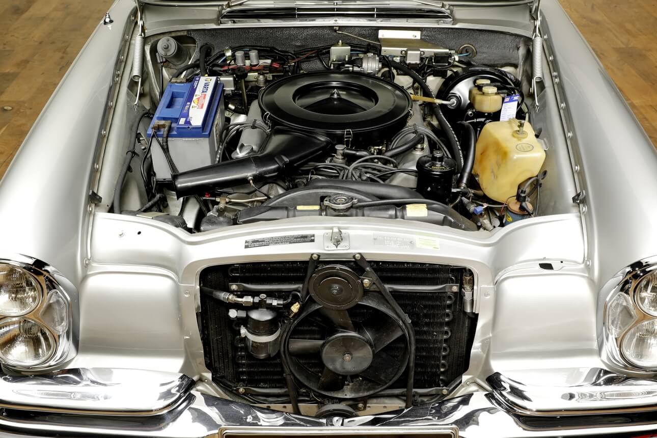 Im Jahr 1969 debutierte dann der 3,5-Liter-V8-Motor mit 200 PS als komplette Neuentwicklung. Dies ging einher mit einer flacheren Motorhaube und niedrigerem Kühlergrill, die zu der (inoffiziellen) Bezeichnung „Flachkühler“ im Unterschied zum „Hochkühler“ führte. So hat Mercedes seinerzeit demonstriert was technisch machbar war und seinen Anspruch als Konstrukteur und Hersteller des „besten Automobils“ untermauert. Im übrigen war diese Baureihe als mondänes Coupé und Cabriolet bei vielen Prominenten und Stars sehr beliebt.
