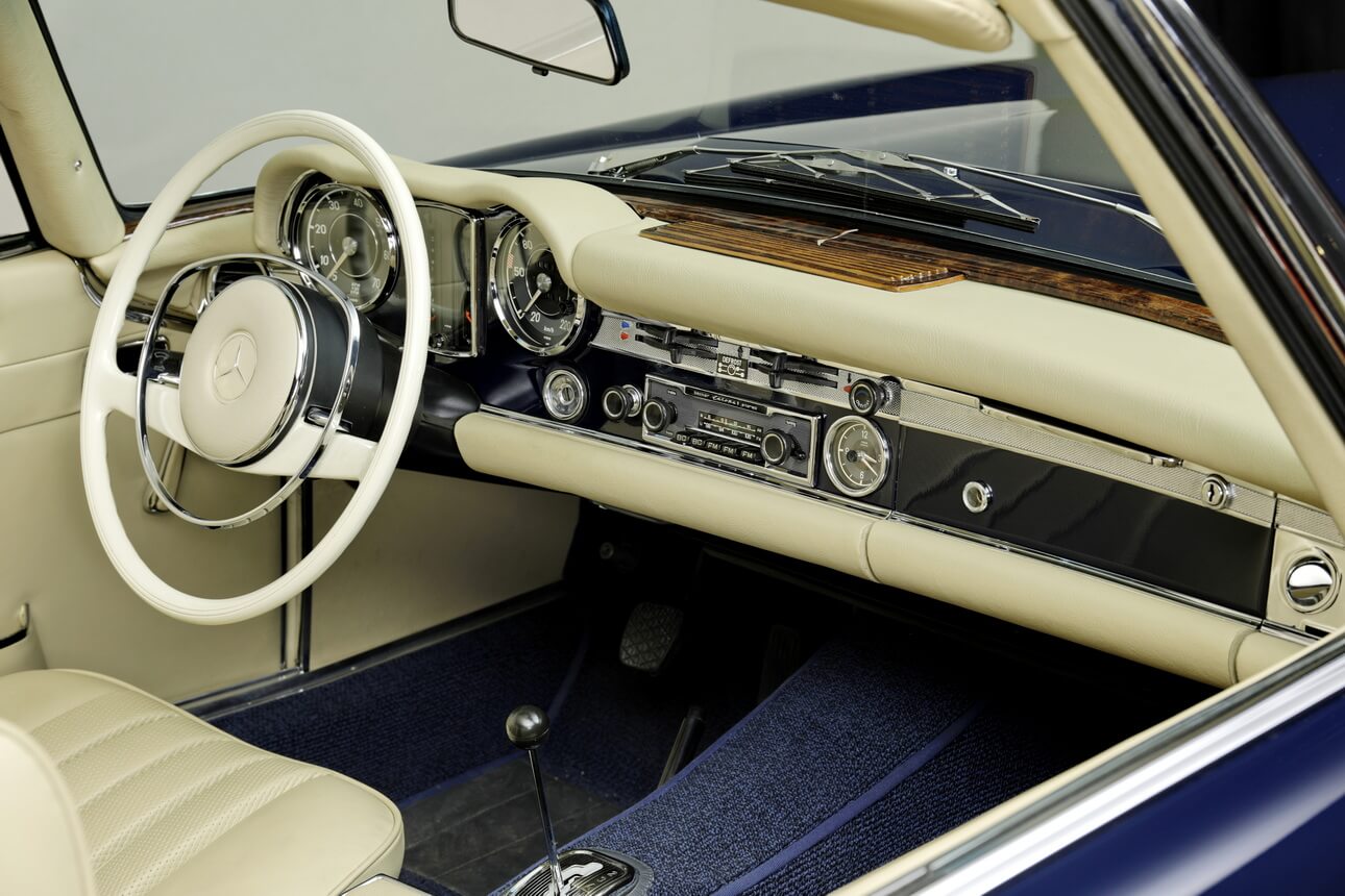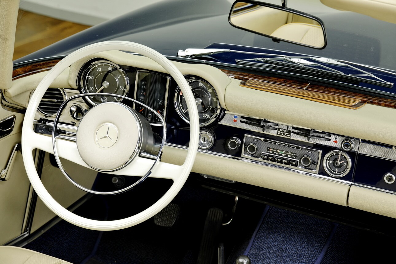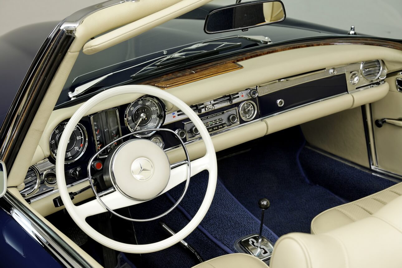 Der SL der Baureihe W113 wurde im März 1963 auf dem Genfer Automobilsalon vorgestellt – und zwar als Nachfolger von gleich zwei erfolgreichen Modellen: dem 190 SL und 300 SL. So wurde neue SL als ein komfortabler, zweisitziger Reisewagen mit hohen Fahrleistungen und optimaler Fahrsicherheit konzipiert. Die technische Basis entsprach der Heckflossen-Limousine 220 SE mit dessen verkürzter und verstärkter Rahmen-Bodenanlage einschließlich Vorder- und Hinterradaufhängung. Der Reihen-Sechszylinder-Motor mit 2,3 Liter Hubraum kam auf eine Leistung von 150 PS im zuerst erhältlichen 230 SL. Alternativ zum 4-Gang-Schaltgetriebe war eine 4-Gang-Automatik und ab 1966 ein 5-Gang-Schaltgetriebe von ZF erhältlich. Als erster Sportwagen hatte der 230 SL eine Sicherheitskarosserie mit steifer Fahrgastzelle und verformbarer Front- und Heckpartie.
