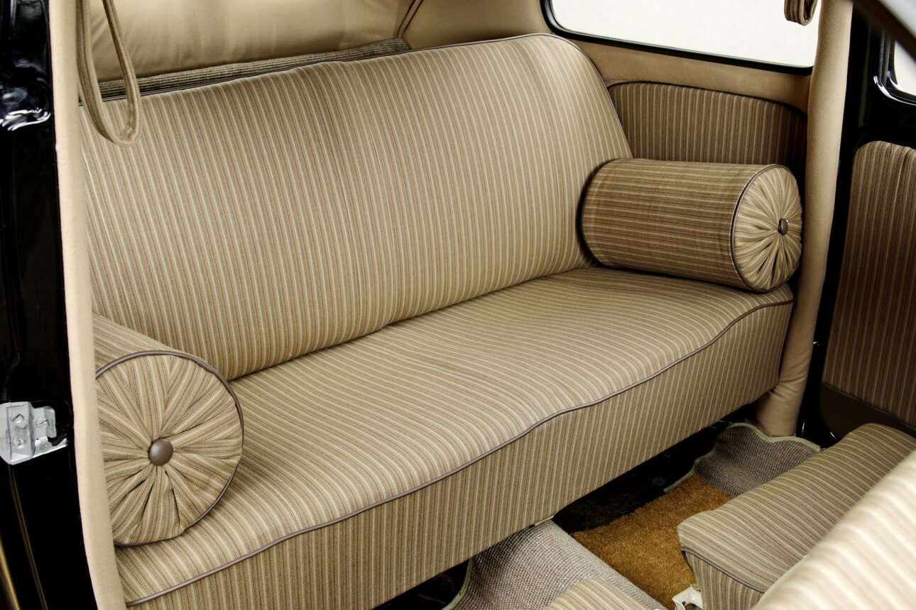 Der Wagen hat die 70 Jahre seit seiner Erstzulassung mit zwischenzeitlicher Überarbeitung bzw. Restaurierung hervorragend überstanden. Von gut gemeinten Modernisierungen wie dem Umbau auf große Rückleuchten oder das einschweißen eines anderen Heckfensters blieb er ebenso verschont wie von „Verbastelungen“ im Zuge von späteren Individualisierungen. Besonders hervorzuheben ist das hellbraune Stoff-Interieur in quasi neuwertigem Zustand.